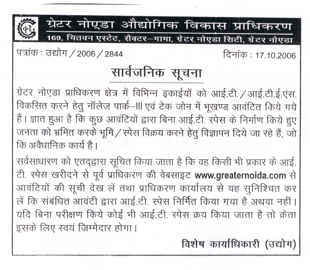 Home | Institutional | Industrial | Residential | Commercial | Infotech & Bio-Tech Parks | Information Current Schemes | Building Byelaws | Right to Information | News | About Us | Contact Copyright 2005 GreaterNoida.com | Disclaimer