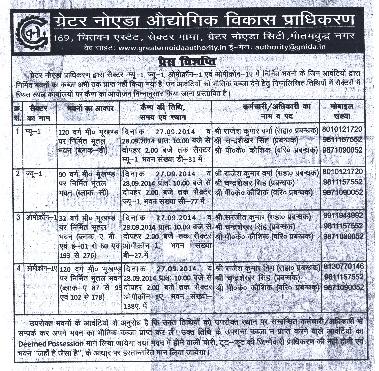 - Important Notice regarding Possession of Plots